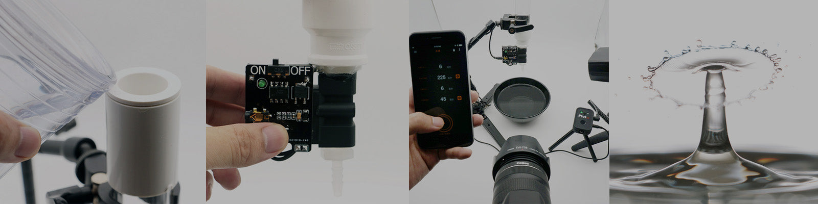 The Pluto Valve, together with the Pluto Trigger, enables you to take photos of water drops colliding in mid-air (for splash photography)!